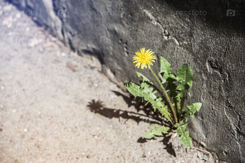 Цветок одуванчика прорастает сквозь асфальт