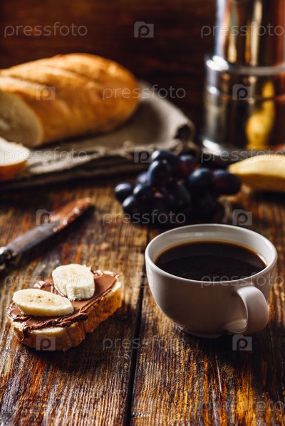 Завтрак с фруктовым сэндвичем и кофе