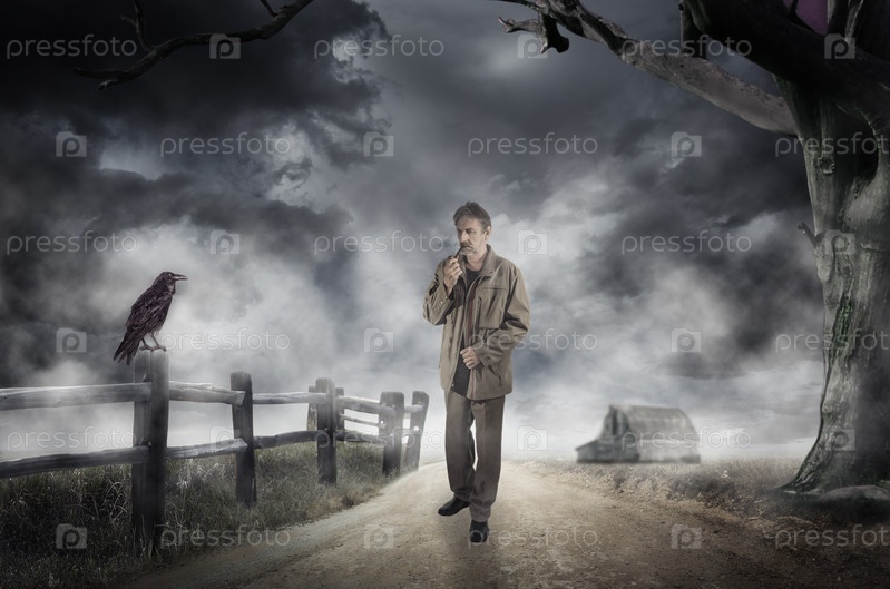Ворон на дороге