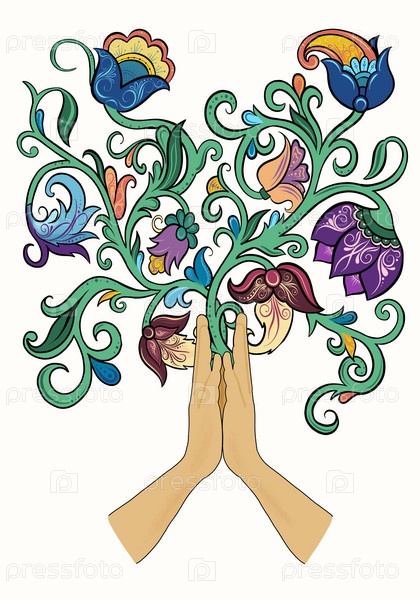 Руки намастэ с цветочным орнаментом