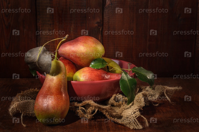 Груши оптом на темном деревянном фоне в деревенском стиле