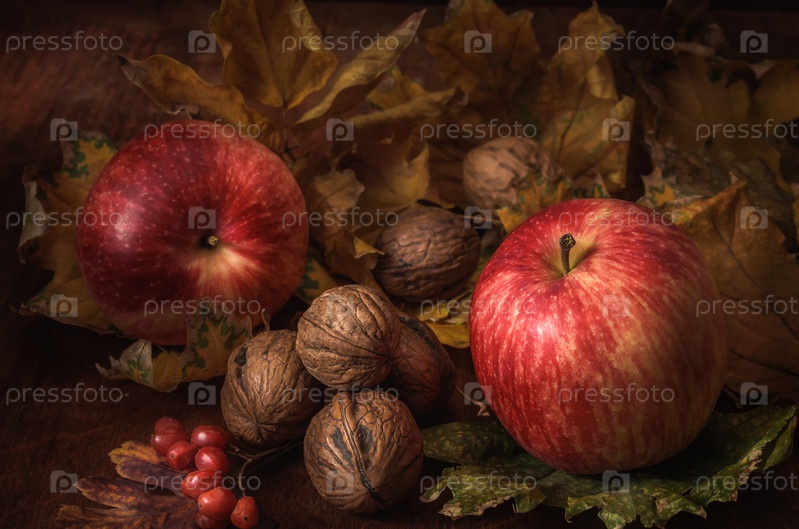 Яблоки оптом на темном деревянном фоне в деревенском стиле