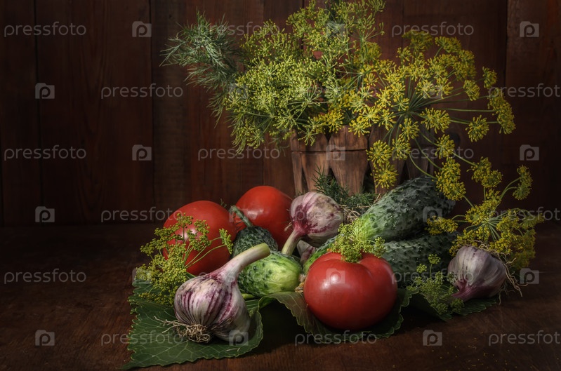 Спелые свежие овощи на темном деревянном фоне