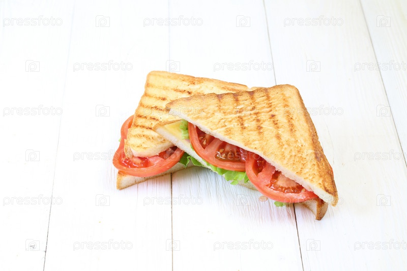 Сэндвич с помидорами, сыром и ветчиной на темном деревянном фоне