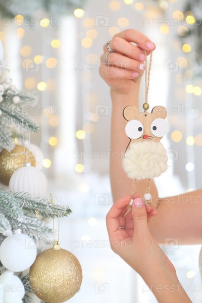 Женские руки заряжают елку