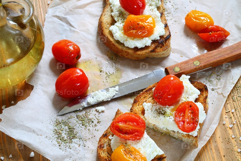 Брускетта с сыром рикотта и вялеными томатами с прованскими травами