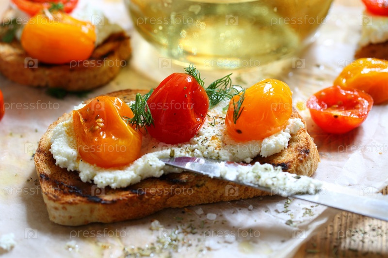 Брускетта с сыром рикотта и вялеными томатами с прованскими травами
