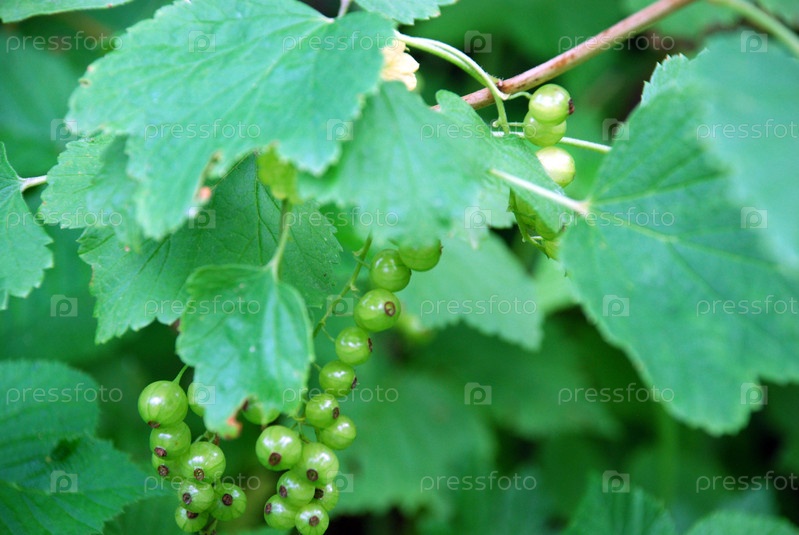 Пучки зеленых ягод красной смородины