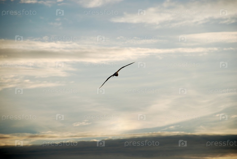 Чайка летит между небом и землей