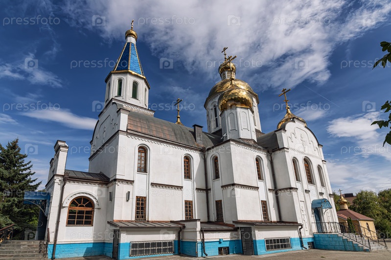 Вид на церковь Успения Пресвятой Богородицы в станице Ессентукской. Фото сделано на широкоугольный объектив