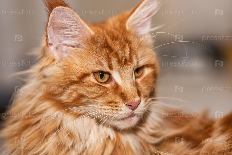 Очаровательный рыжий пушистый кот породы мейн-кун крупным планом