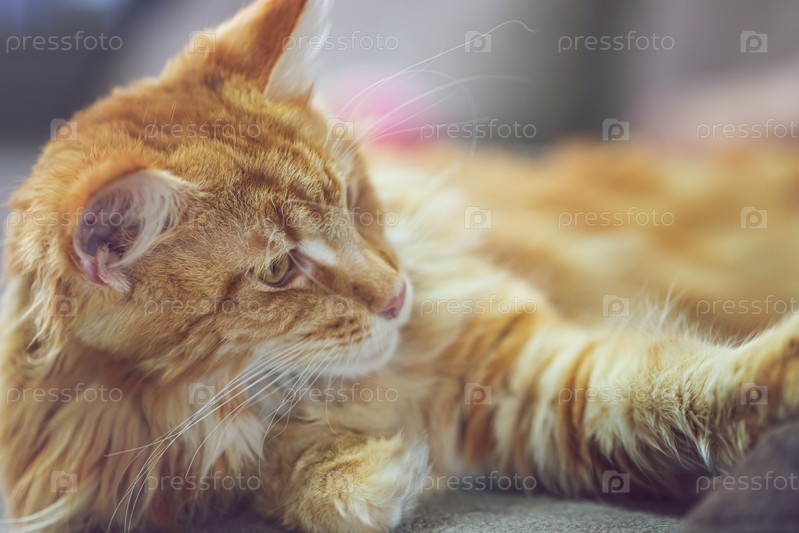 Очаровательный рыжий пушистый кот породы мейн-кун крупным планом