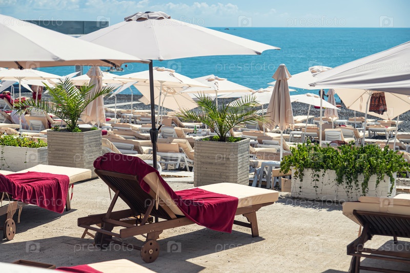 Отличные пляжные зоны с шезлонгами и зонтиками, расположенные близко к морю