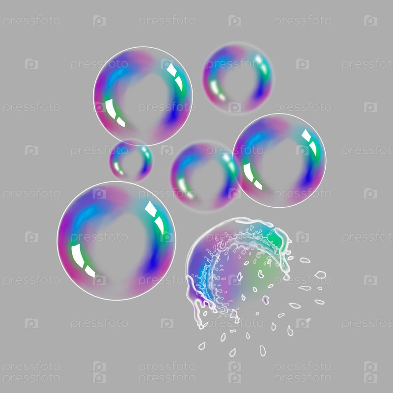 Мыльные пузыри летают в воздухе на изолированном фоне. Мыльный пузырь лопнул