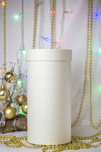 На столе стоит круглая коробка. Поверхность пуста для письма или вставки. макет продукта с крышкой. Круглая бумажная банка
