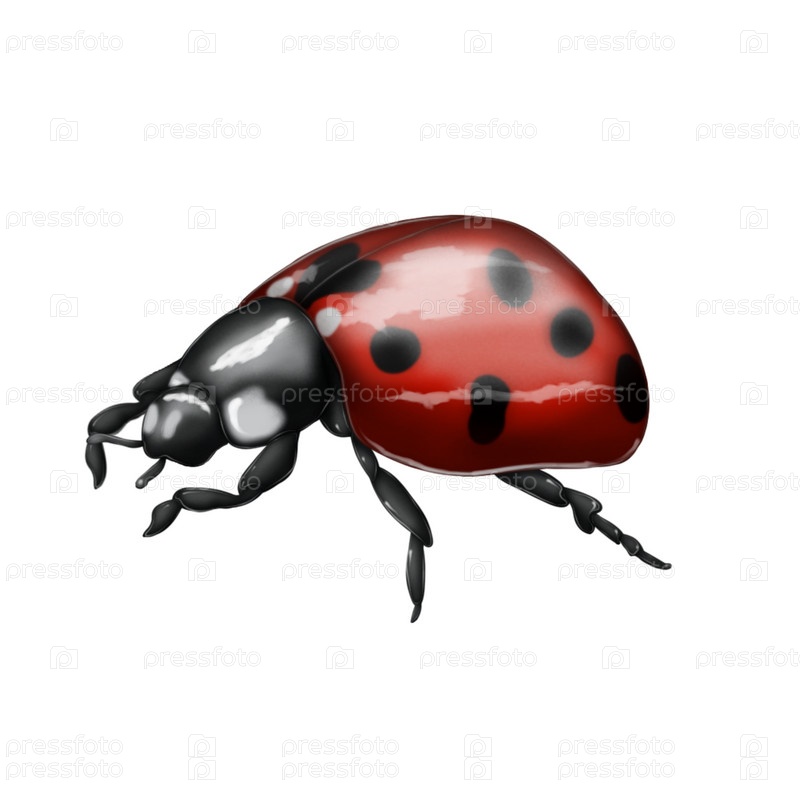 Иллюстрация божьей коровки на изолированном фоне. Яркий и красивый. печать, иллюстрация