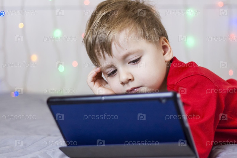 Портрет милого мальчика в шапке Санта-Клауса. Забавный улыбающийся ребенок