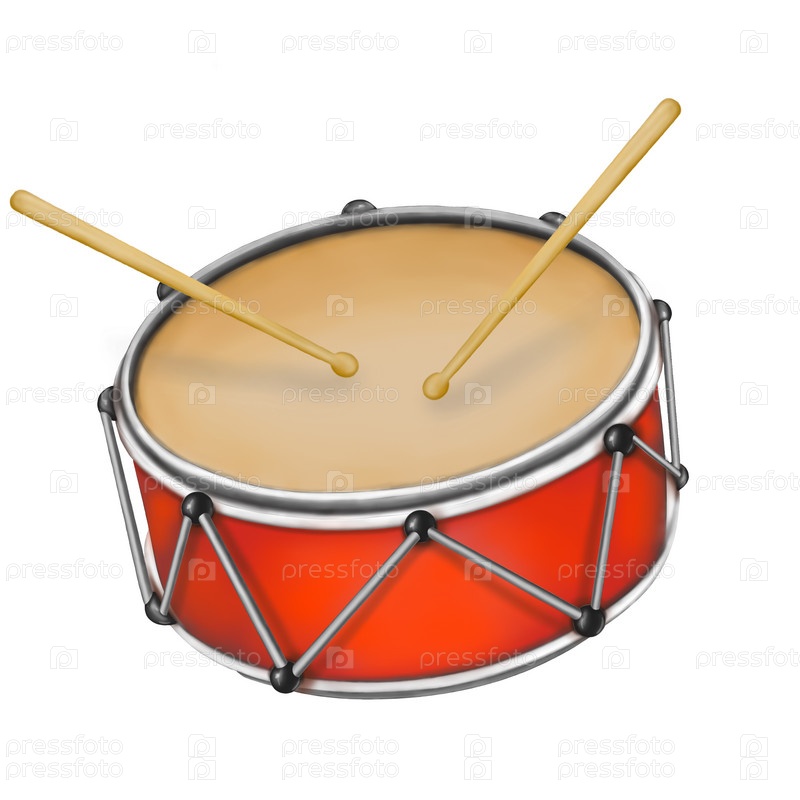 Иллюстрация детского барабана на изолированном фоне. Клип-арт музыкальные инструменты. Барабан