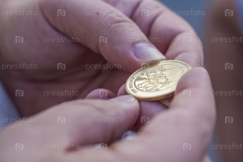 16.08.2022 Россия, Самара, Турбаза "Замок Гарибальди" в селе Хрящевка Самарской области. Недавно отчеканенная памятная монета в руке