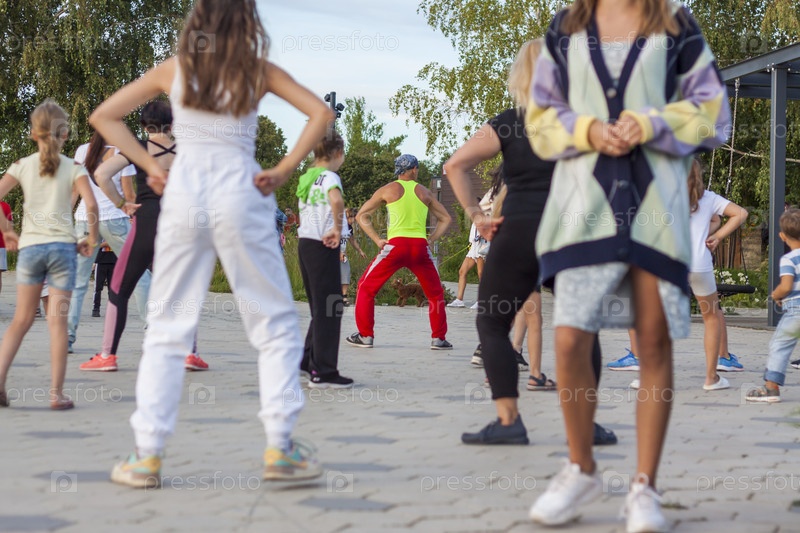 2022-08-17. Россия. Самара. Занятия зумбой на открытом воздухе. Фитнес, спорт, победа, успех и концепция здорового образа жизни. Каждый может заниматься спортом на открытом воздухе