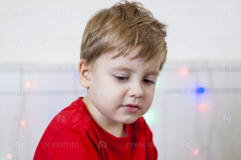 Портрет ребенка в красной куртке в светлой комнате. Эмоциональный ребенок, радость,