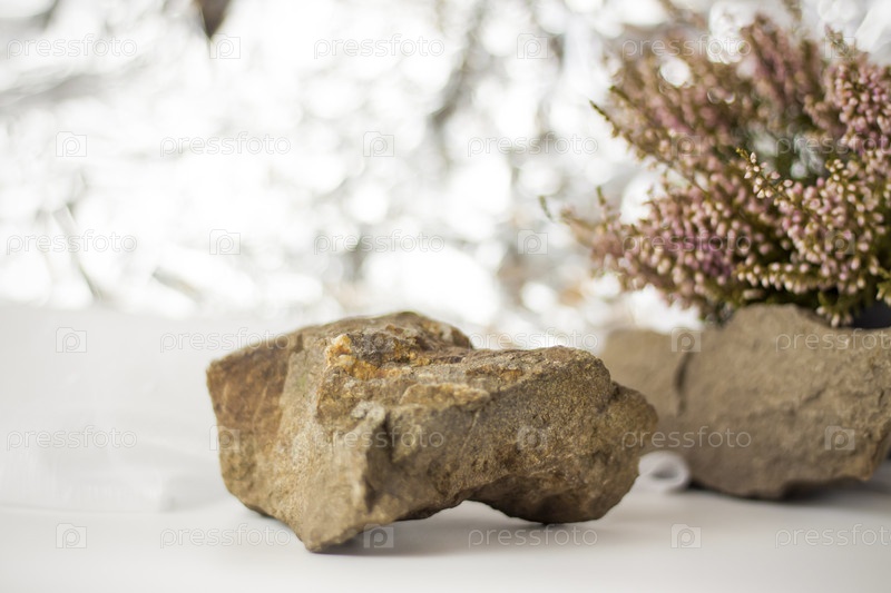 Нежный фон для презентации. Камни и маленькие розовые бутоны. Стильный внешний вид, планировка, индивидуальность. Баннер, место для текста