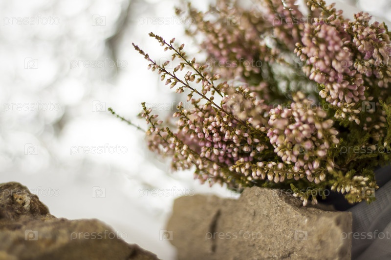 Нежный фон для презентации. Камни и маленькие розовые бутоны. Стильный внешний вид, планировка, индивидуальность. Баннер, место для текста