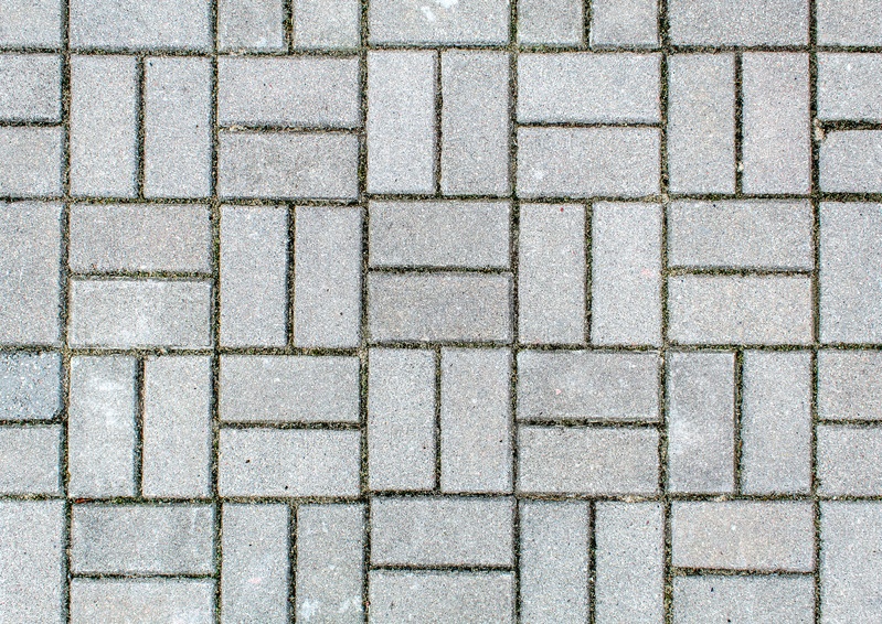 Дорога вымощена тротуарной плиткой. текстура светло-серого кирпича