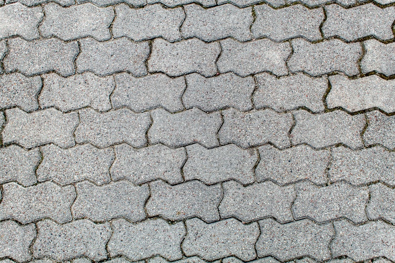 Дорога вымощена тротуарной плиткой. текстура светло-серого кирпича