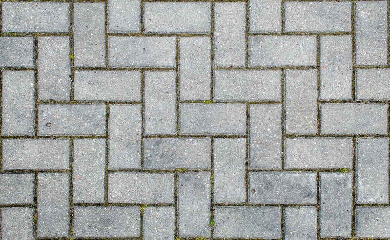 Дорога вымощена тротуарной плиткой. текстура светло-серого кирпича