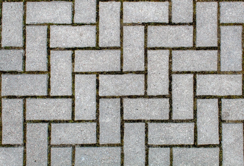 Дорога вымощена тротуарной плиткой. текстура светло-серого кирпича