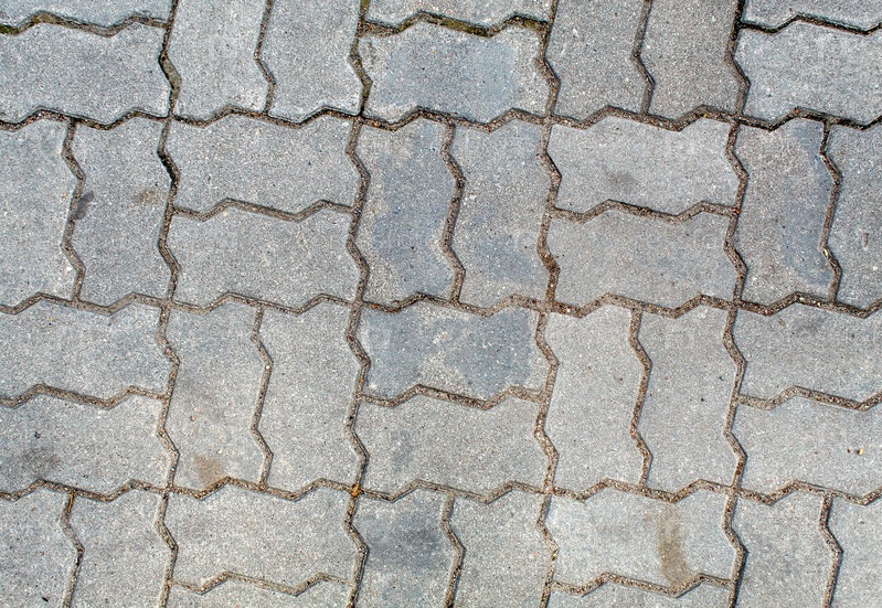 Дорога вымощена тротуарной плиткой. текстура светло-серого кирпича