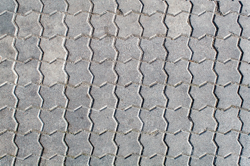 Дорога вымощена тротуарной плиткой. текстура светло-серого кирпича