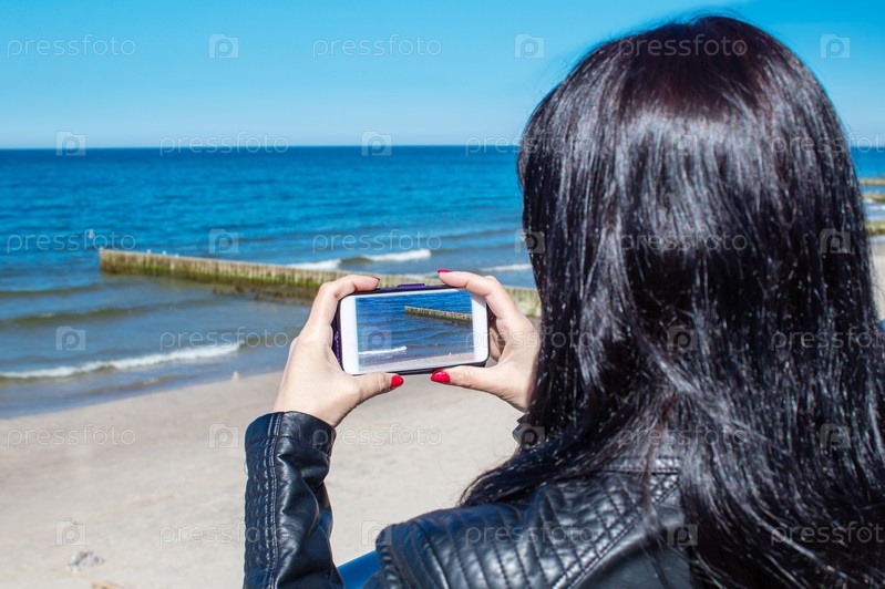 Молодая женщина с помощью мобильного смартфона
