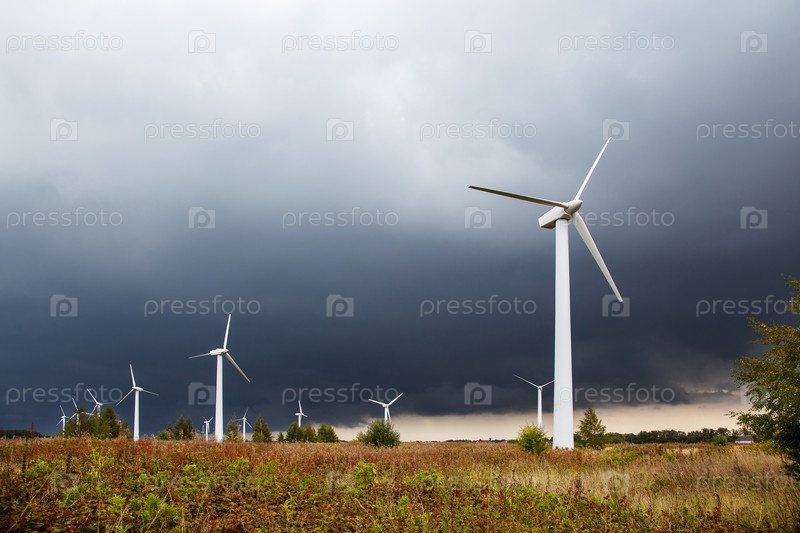 Современные ветряные мельницы в поле