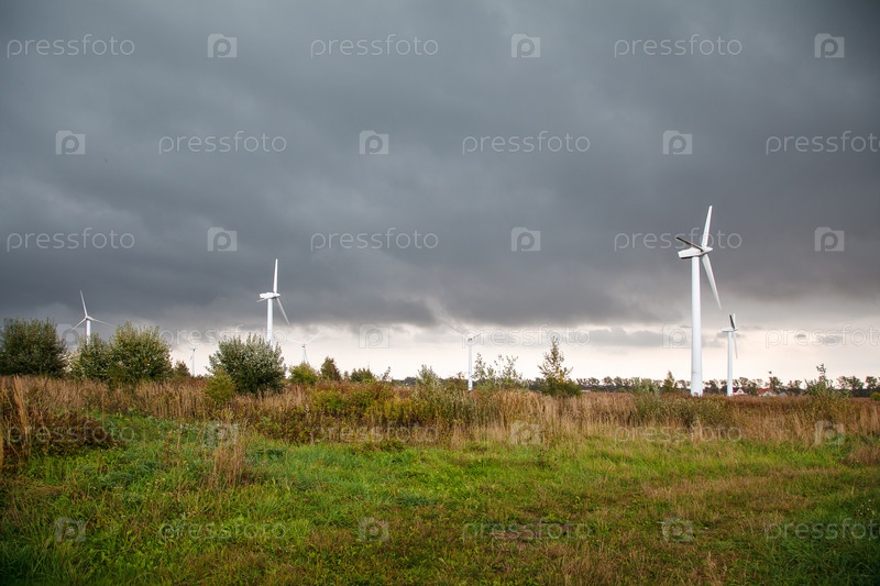Современные ветряные мельницы в поле