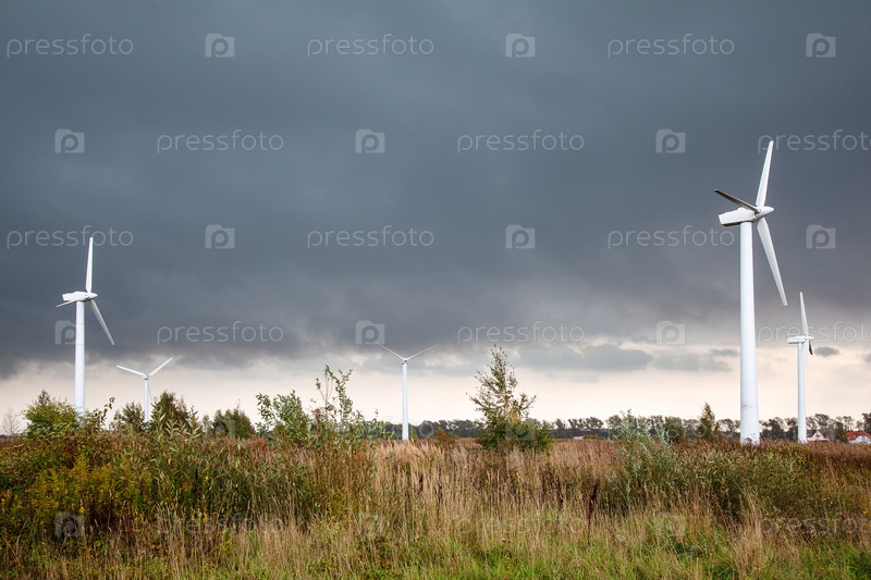 Современные ветряные мельницы в поле
