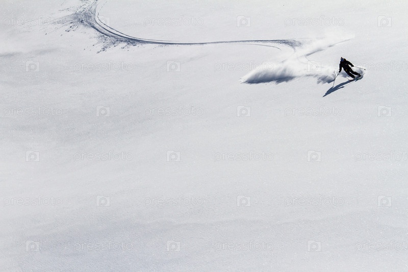 Лыжня на свежем снегу, силуэт фрирайдера. Камчатка