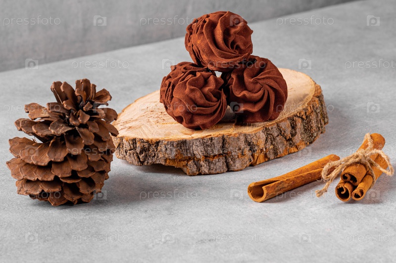 Кофе зефир с минимальным количеством сахара на сером фоне, здоровая пища. лакомство для гурманов