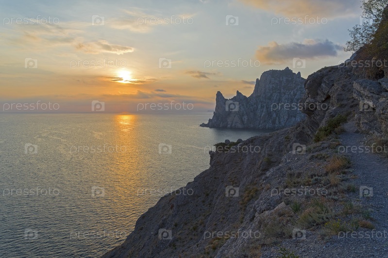 Закат над морем. Вид в сторону скал Караул-Обы с мыса Капчик. Новый Свет, Крым, середина октября