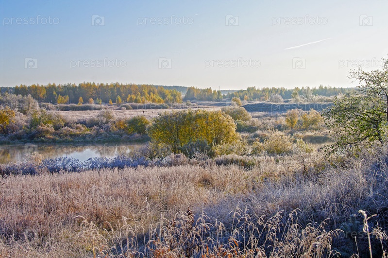 Солнечное октябрьское утро на реке. Река Нерль, село Кидекша, Суздальский район Владимирской области
