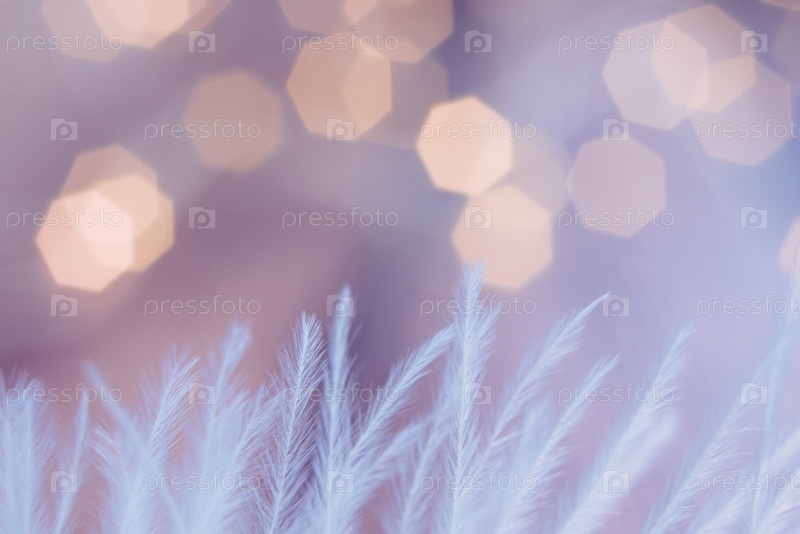 Абстрактный фон рождественские огни с белым пером, как ветвь замороженного снега. Новогодний фон с копировальным местом для открыток, плакатов и приглашений