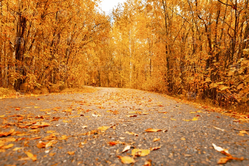 Асфальтовая дорога для бега по осеннему лесу