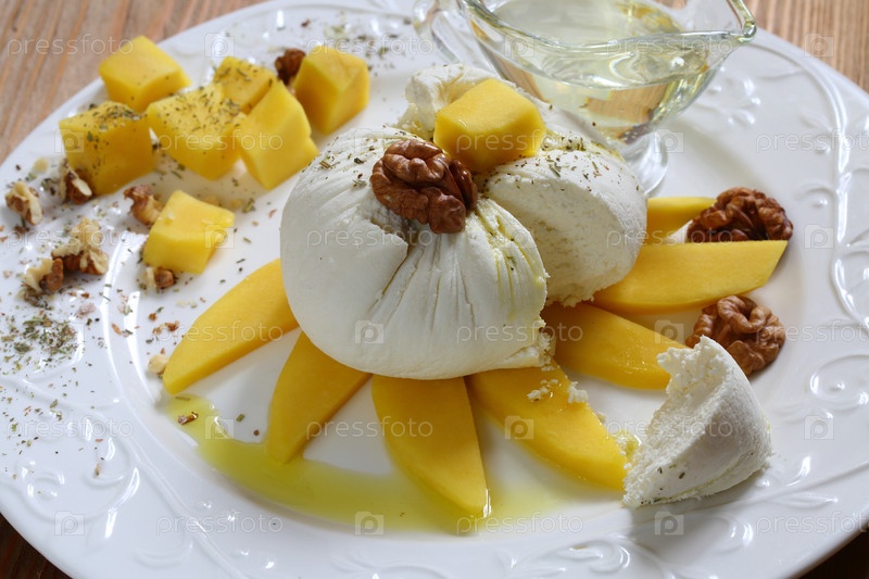 Мягкий белый сыр с манго, грецким орехом и медом