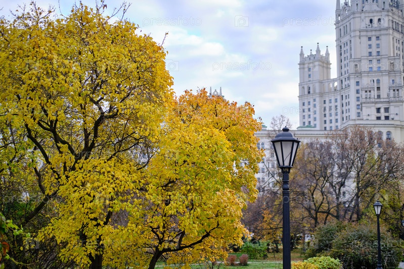 Ретро-уличный фонарь в городском парке осенью