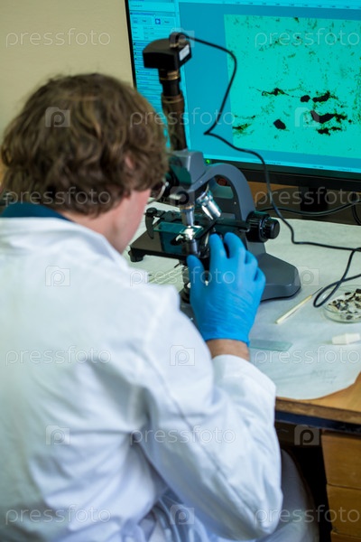 Ученый исследует плесень каннабиса сатива через электронный микроскоп