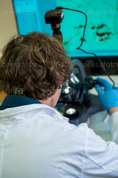 Ученый исследует плесень каннабиса сатива через электронный микроскоп