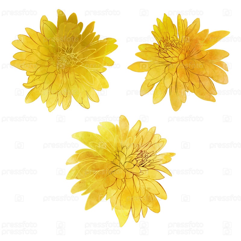 Цветы. Рудбекия, Золотые шары. Ручной рисунок акварелью на белом. Изолированные элементы. Идеально подходит для приглашений, поздравительных открыток и в качестве элемента дизайна