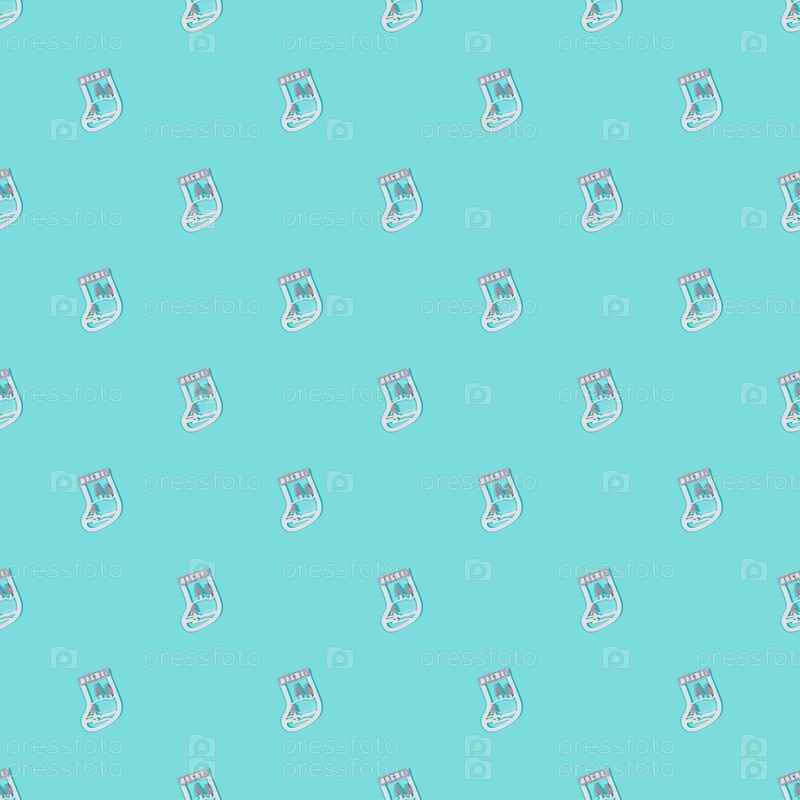 Рождественский узор из носка на синем фоне. Праздничная новогодняя концепция