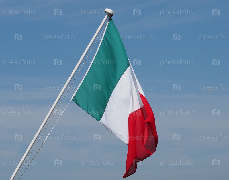 Итальянский национальный флаг Италии, Европы над голубым небом